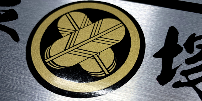 数ある切り抜きステッカーの中でも家紋ステッカーの繊細さは一番です。小さいサイズ程、高品質の材料・加工精度・仕上げ技術が求められます。多くの実績のある当店なら仕上がりはきっと満足頂けるはずです。また家紋ステッカーは「屋外用」の材料を使用していますので室内はもとより車やガラスなど屋外でのご利用はまったく問題ございません。