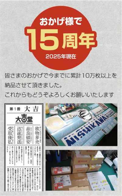 2010年の創業以来、15年間で10万枚以上の販売をさせて頂きました。ありがとうございます!