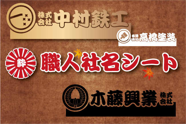 和風な職人シリーズ「日本の職人」の人気商品です。和の職種マークや家紋と組みあわた粋な社名カッティングシートです。
