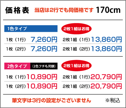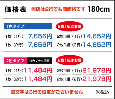 ■2行でも同額のため「切り離してのご利用目的の内容など」は禁止とさせて頂きます。また「ロゴのみ」「1文字のみ」「ロゴがメインで文字が小さい」などは別途お見積りをさせて頂きますのでご了承ください。なお切り分けてご使用頂いた場合は、いかなる場合でも保証は出来ませんので予めご了承下さい