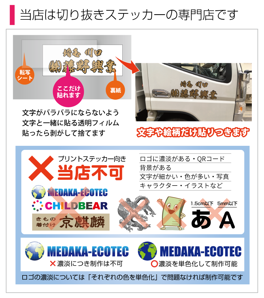 ■車・社用車・営業車・トラック・行燈・ゼッケン・許可番号・産廃ステッカー・ユニック・クレーン・ラフター・ダンプ・ユンボ・重機・事務所ドア・ステンレス板・表札・窓ガラス・ショーウィンドウ・リアガラス・看板など業務用に特化した商品です。法人・個人事業主問いません!