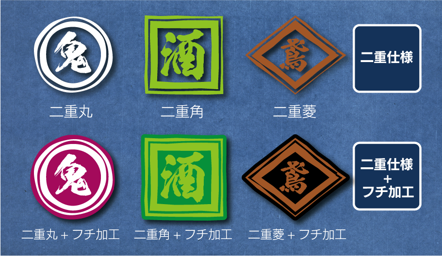 個性が出る二重丸・二重枠の仕様になります。装飾がある分文字サイズは小さくなります