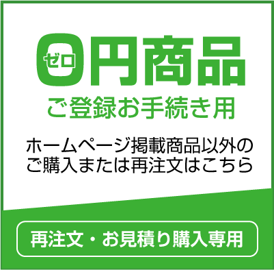 再注文またはお見積りやお問合わせなどからご注文を頂いたお客様は大変お手数で御座いますが「ゼロ円商品をご購入頂きご住所入力とお支払い方法の入力等」をお願い申し上げます。(※通常商品をご購入の場合は不要でございます)