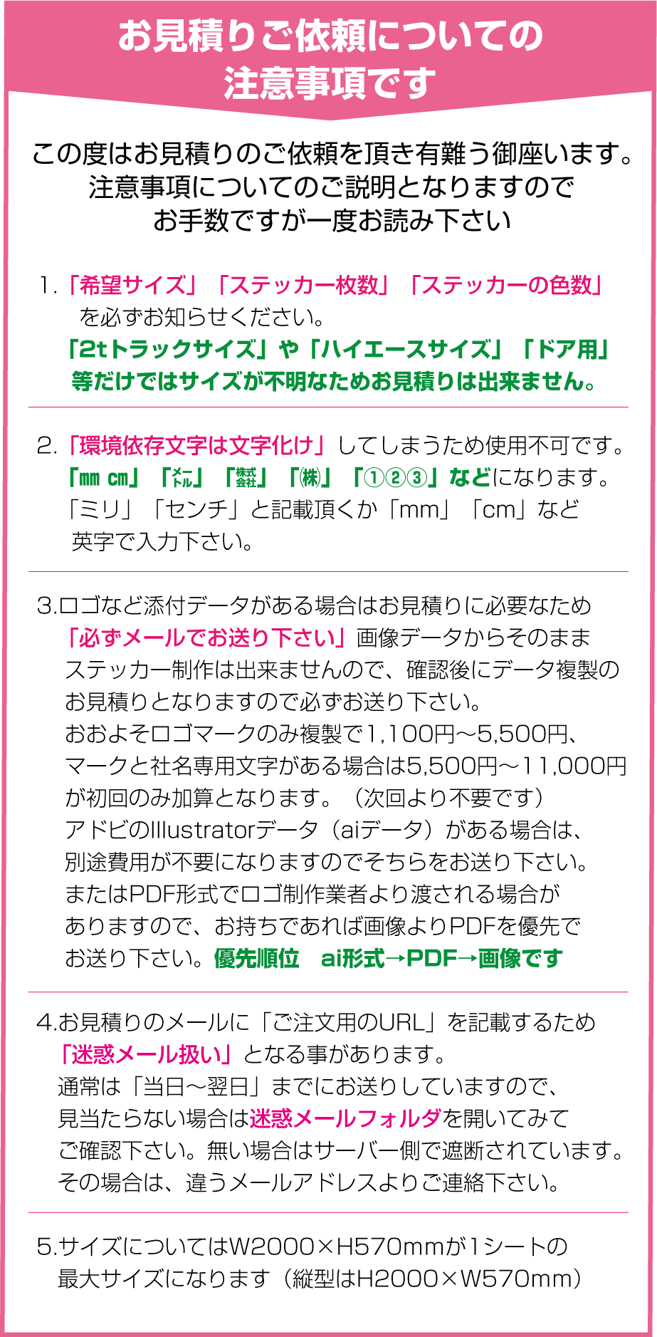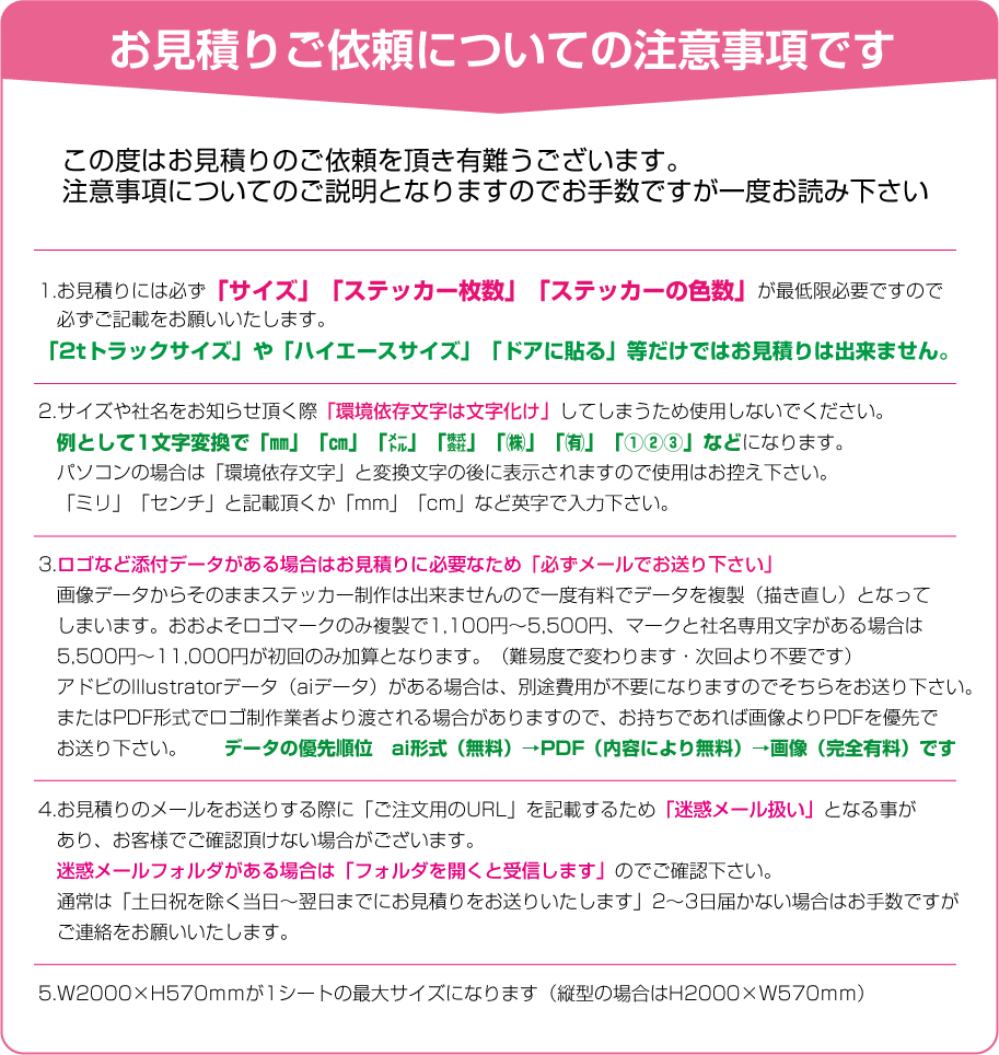 お見積りの注意事項