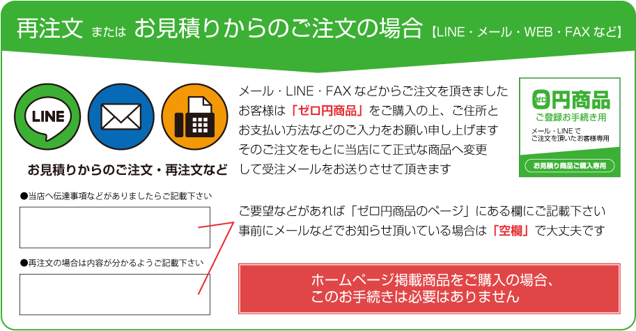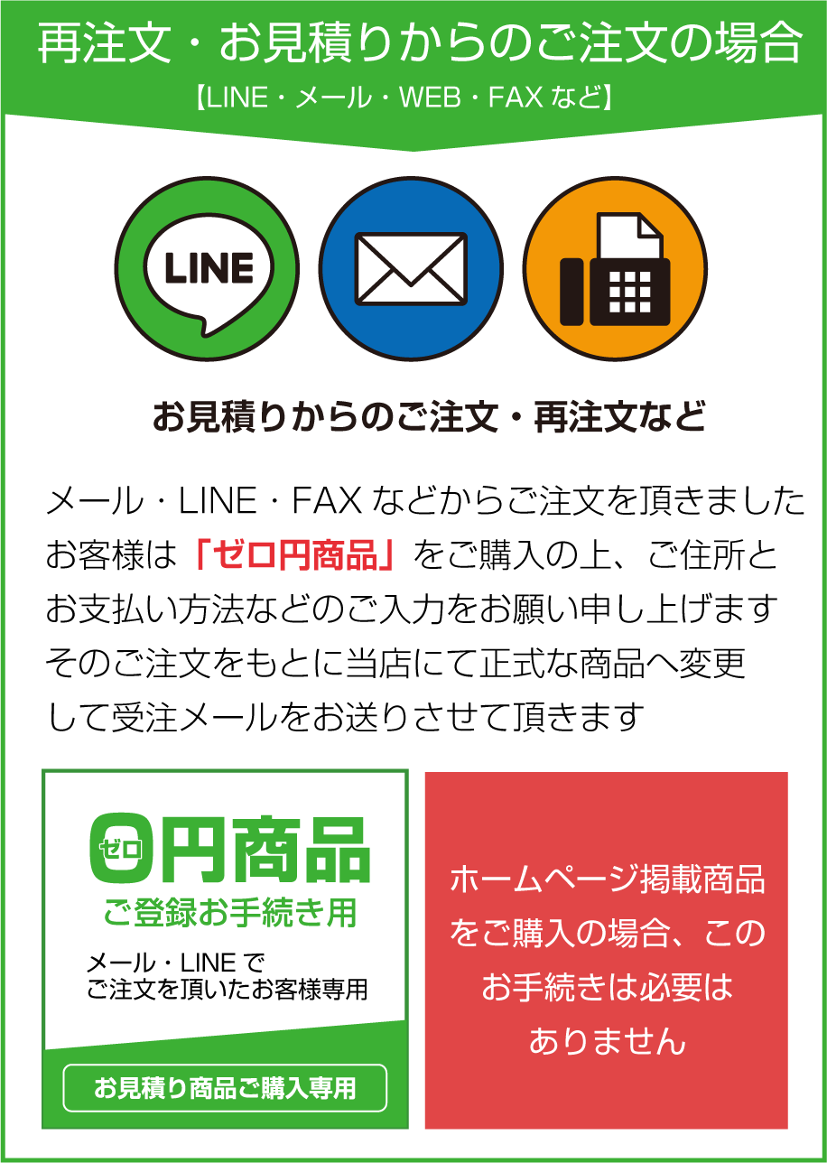 こちら側ではエラーとならないため、お客様が注文ミスで頼んでいないと思った場合でもこちらでは注文が進行してしまいます。そのような事を防ぐためにも「ご注文後にメールが来ない(通常は即届きます)場合」は迷惑メールフォルダをご確認頂くか、違うメールアドレスより至急ご連絡をお願いいたします。