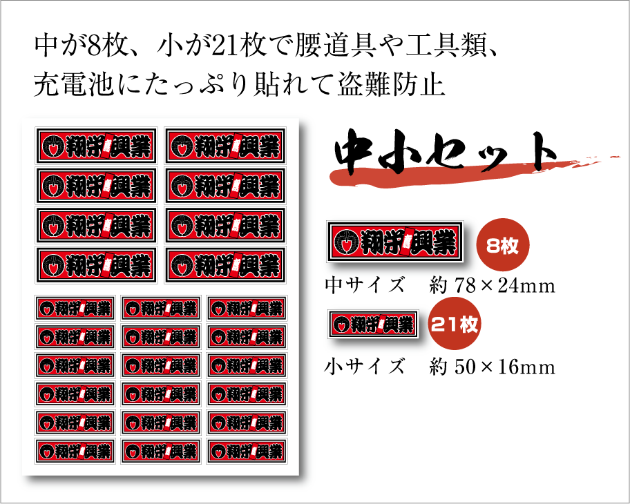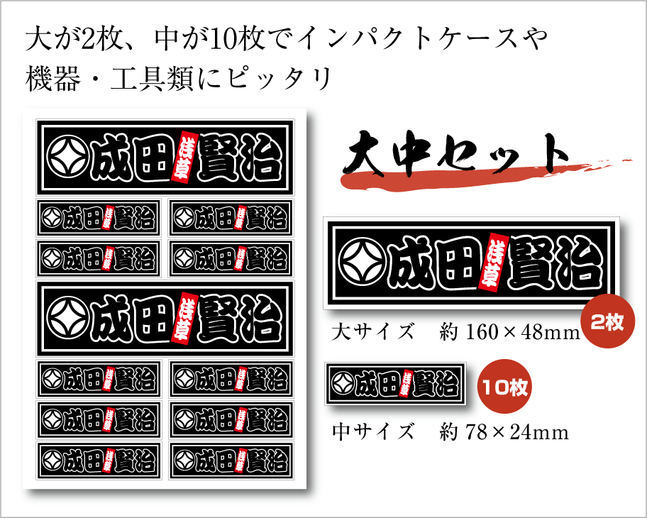 インパクトケースや機器・工具にピッタリな「大中セット」です。大き目サイズで持ち主を明確にしましょう!