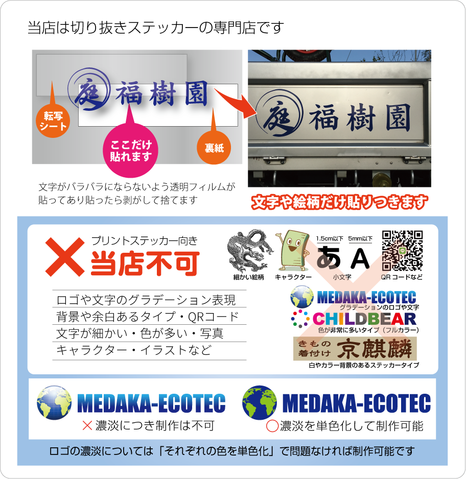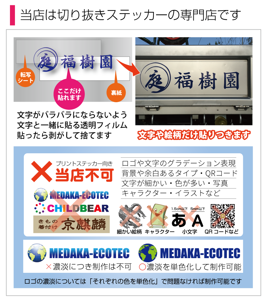 ■影付き文字や線が細い・細かい中抜き・色重ねが多いマークなどは制作出来ない場合がありますので予めご了承下さい。