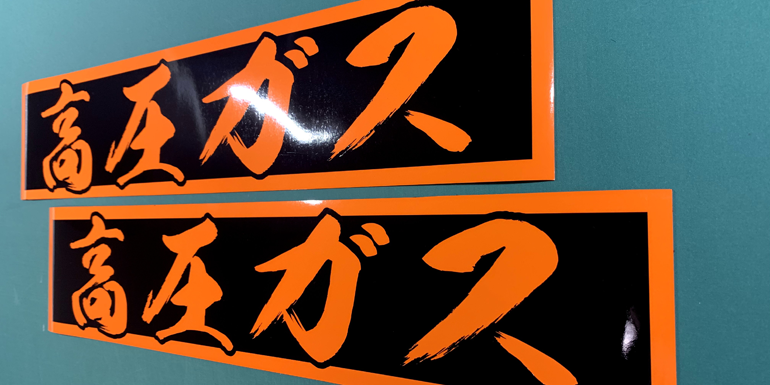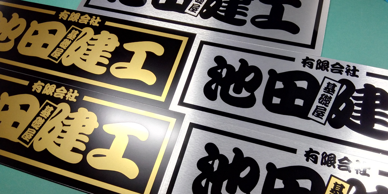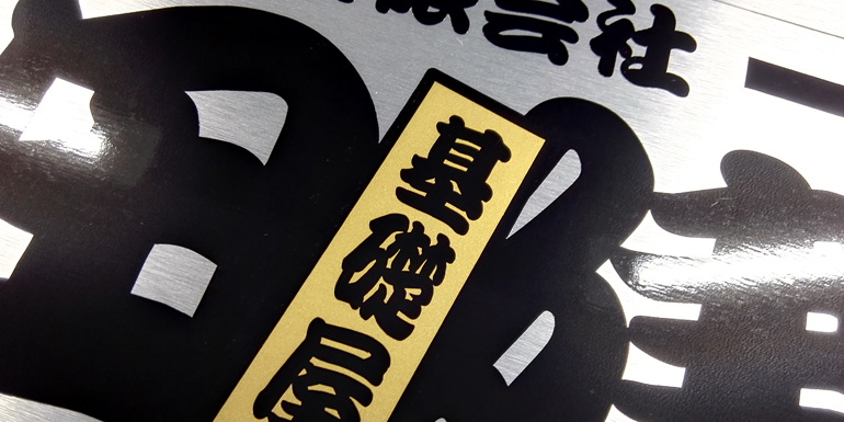 お見積り商品(3色):メタリックシートを使用した行燈用ステッカーです。メタリック部分は透過しませんが、文字より一回り大きくしているので夜間は文字周りが光ります。