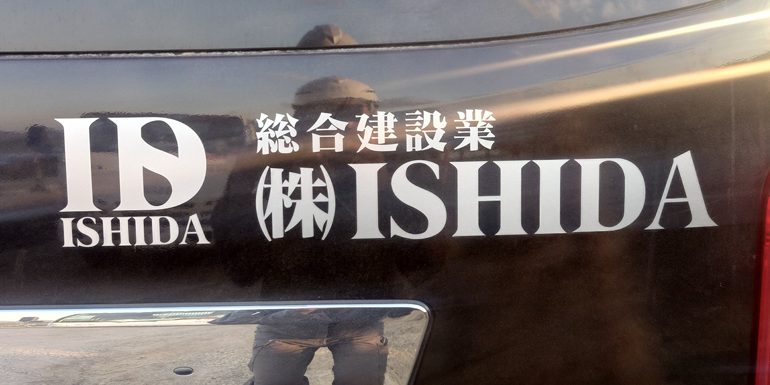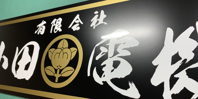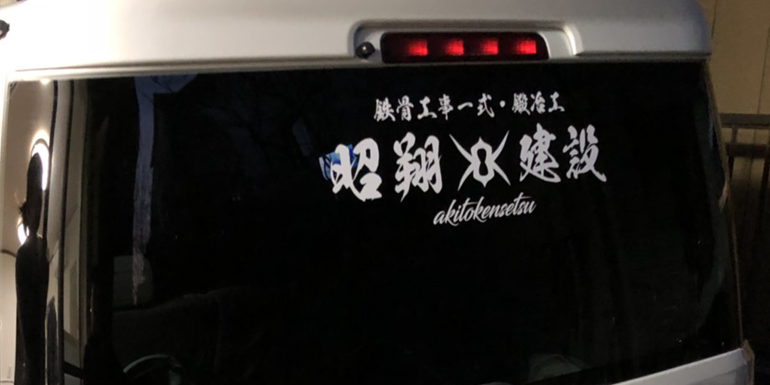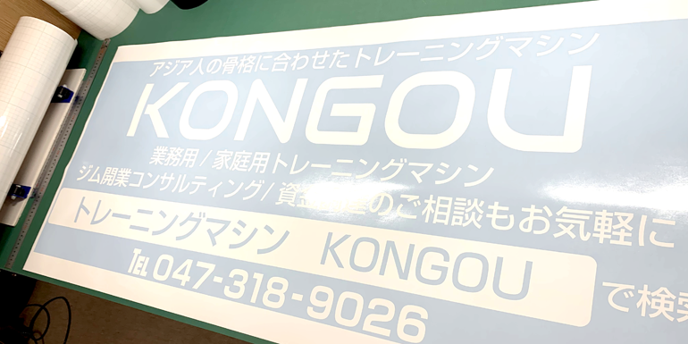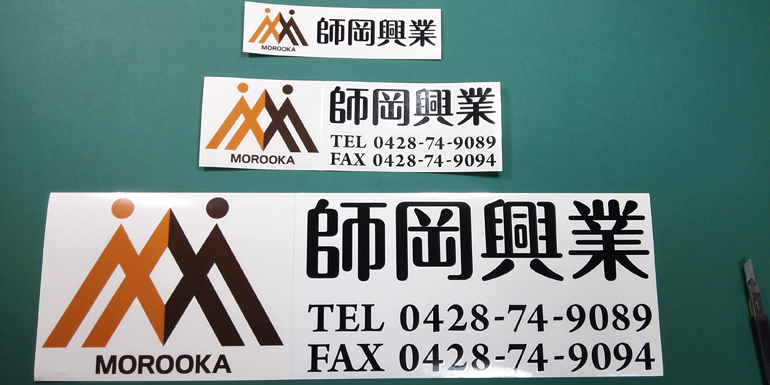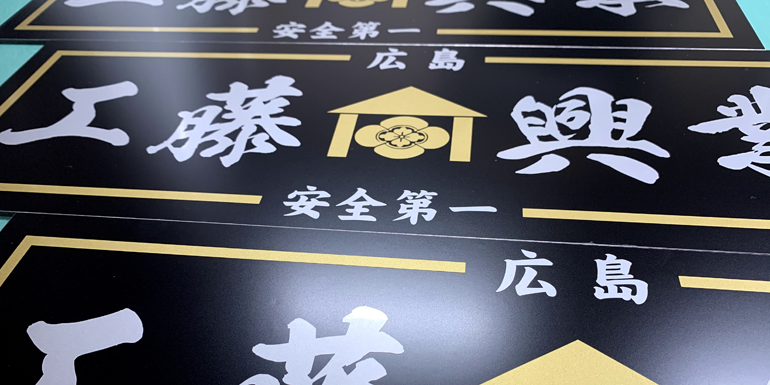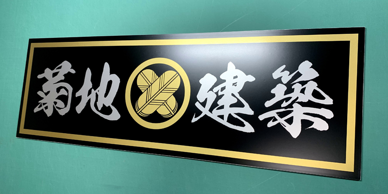 2色フチ加工仕様:W1200mmほかです。車両を止めても見える様、お客様のご要望で上部に施工いたしました。お世話になっている方で施工もいたしました。