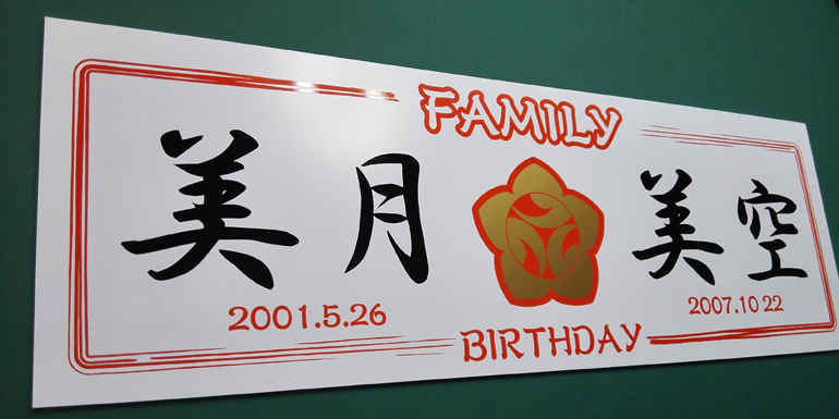 2色仕様:W300mm幅で、白い文字はくり抜きになっています。※背景の白は台紙の色です