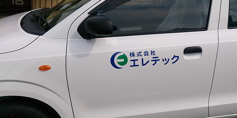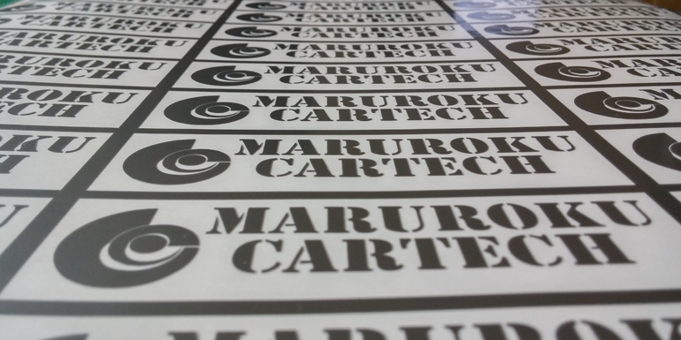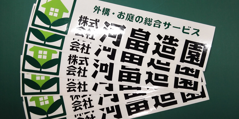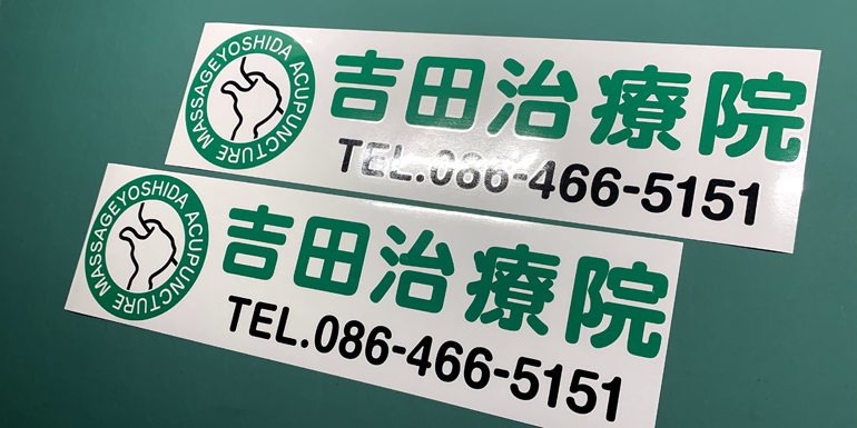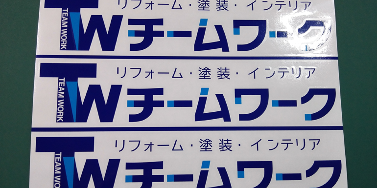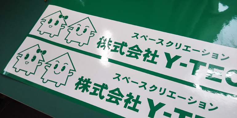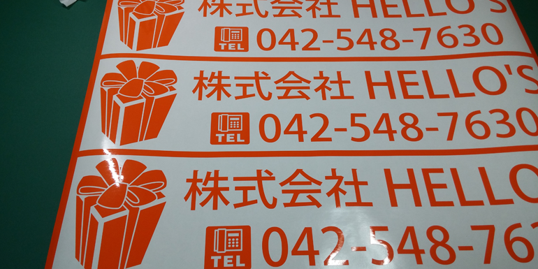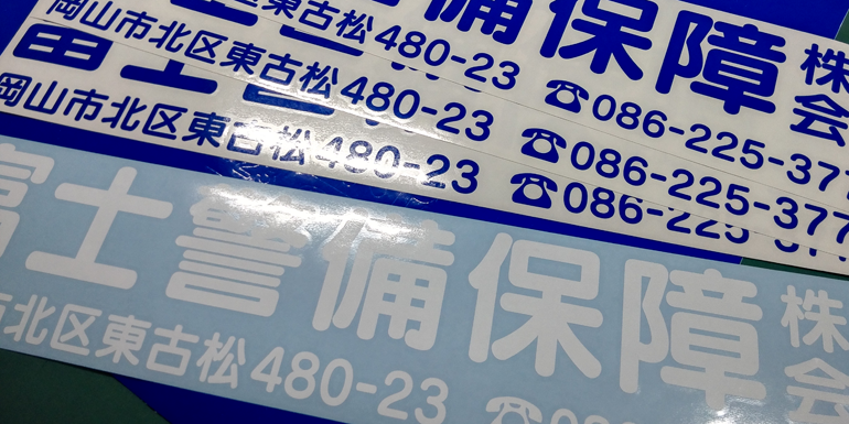 1色仕様:盗難防止の観点からも切り抜きステッカーは有利です。1枚のステッカーだと「ペリッ」と剥がされてしまいますが、このタイプは文字パーツが分割しているので瞬時に剥がす事ができません。