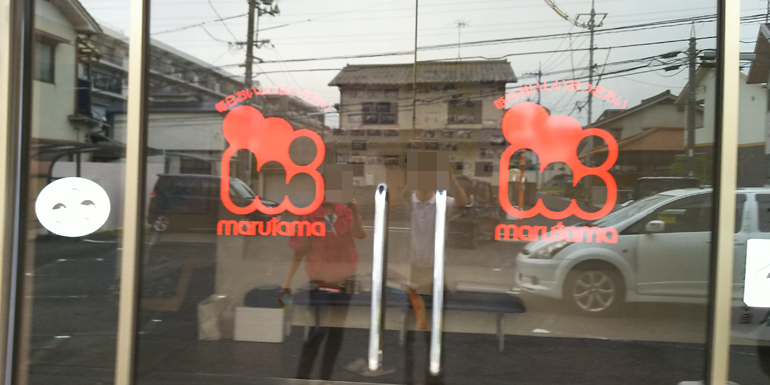 2色フチ加工仕様:W1200mmほかです。看板設置が難しい場所のため通りから見える様、窓ガラスに施工しました。写っていませんが下段には施設名があります。施設・サービスが追加できるよう中段にスペースを取ってあります。
